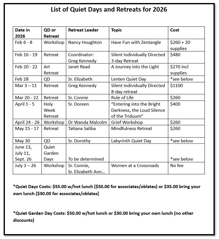 SSJD may cancel retreats/quiet days without a minimum of 10 registrants and make full refunds