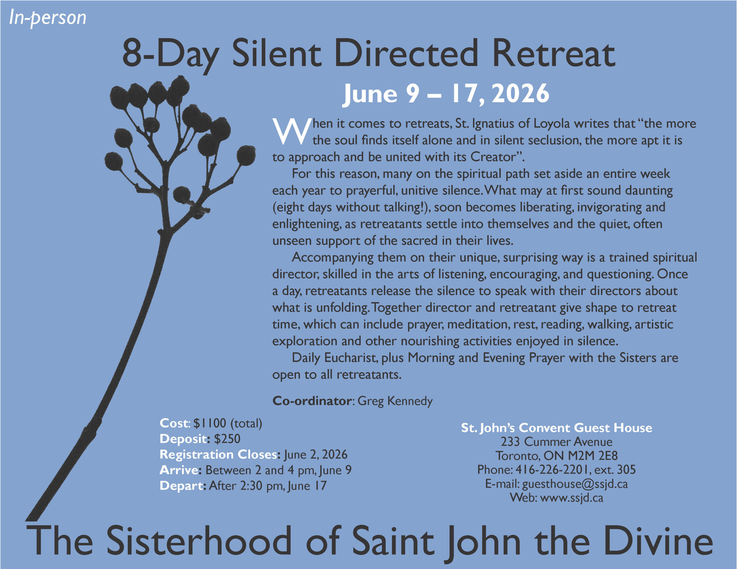 Daily Eucharist, plus Morning and Evening Prayer with the Sisters are open to all retreatants.