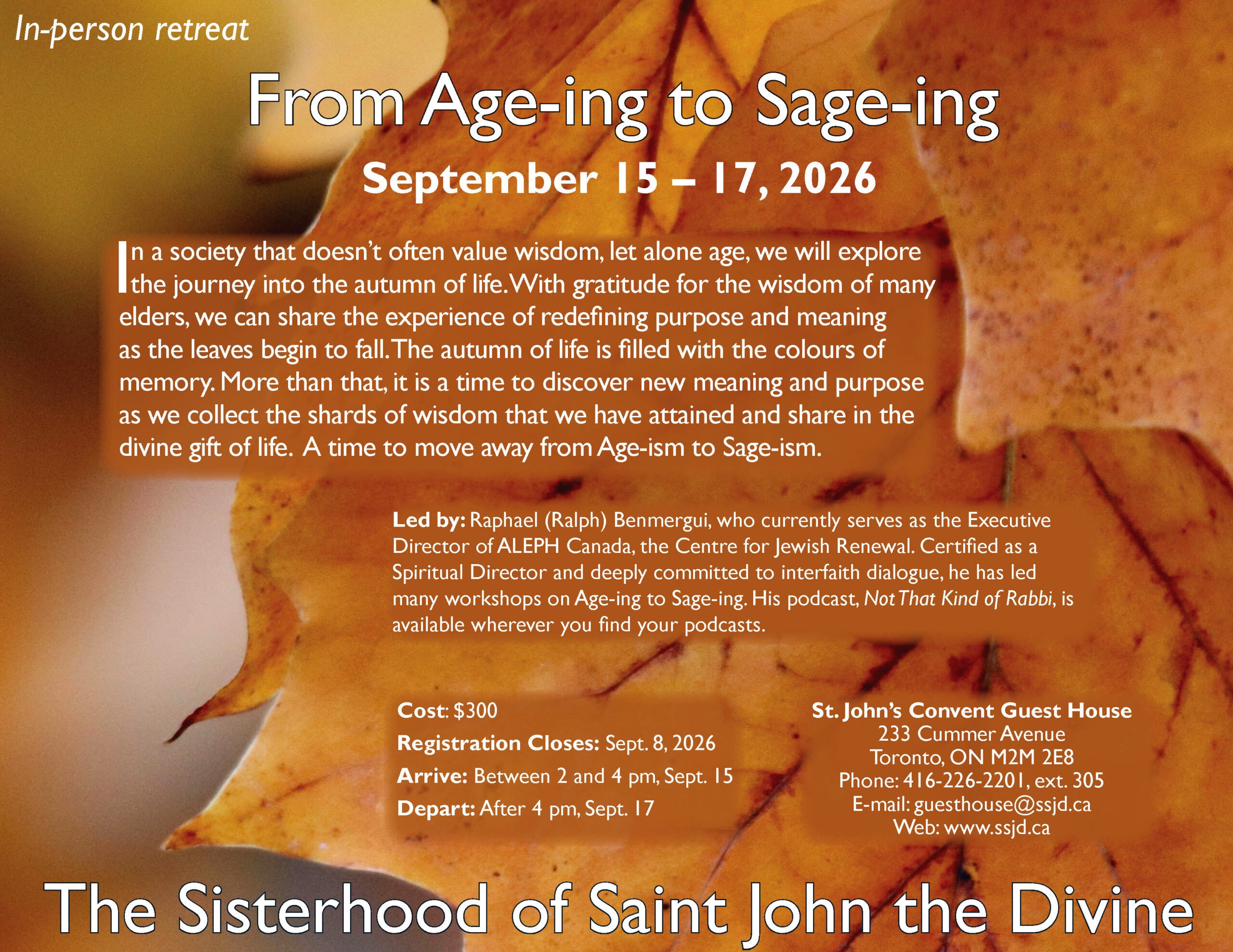 From Age-ing to Sage-ing (September 15-17, 2026)